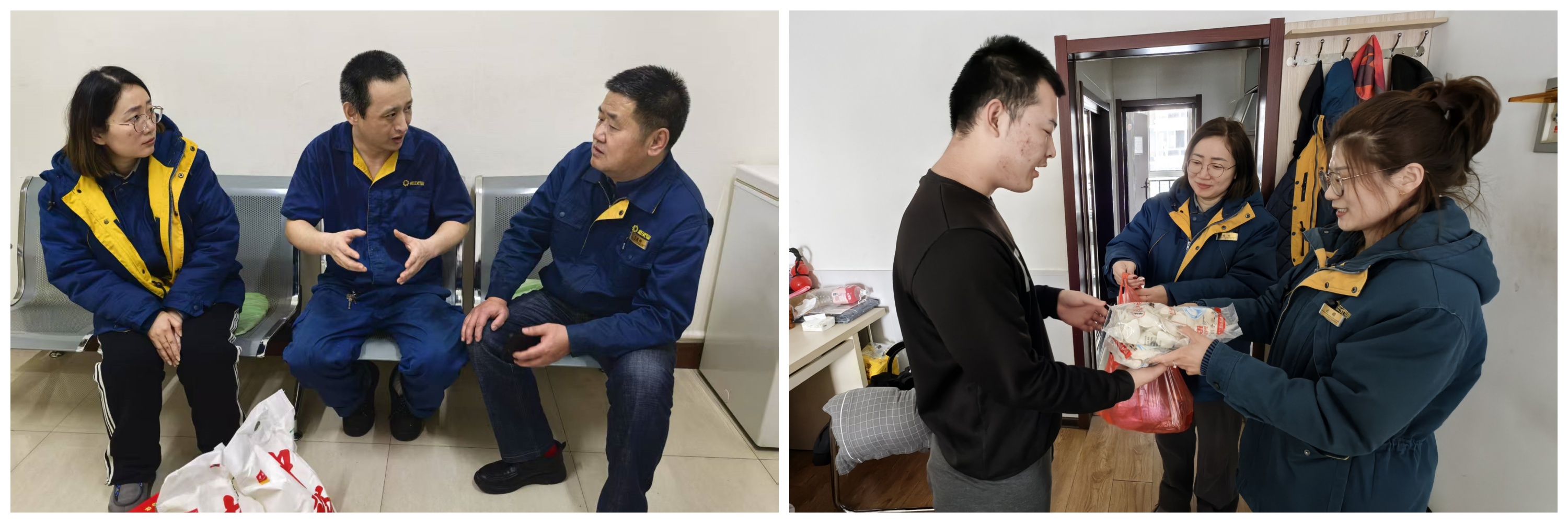 工会及人力资源部代表公司前往单身公寓,慰问倒班作业的单身青年员工,为他们送去节日“大礼包”和暖心祝福,让他们在异乡也能感受到家的温暖。
