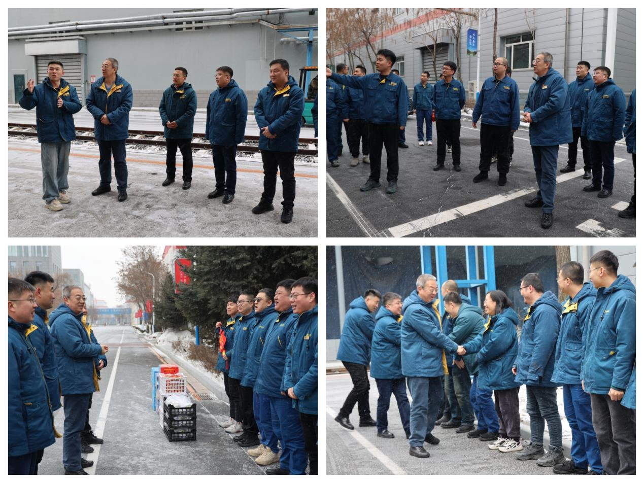在热电、自动化分厂,公司领导驻足观看了热电员工们制作的冰雕作品、风采展示照片墙以及自动化员工们制作的迎新视频,领导们对员工们的才华和创造力表示高度赞赏,对新的一年充满了期待和信心。随后,公司领导又深入机修分厂、给排水分厂、仓储部、质检部,与员工们互致新春佳节的美好祝愿,并了解了各部门的班次安排、人员值守等具体情况,感谢他们全力为春节期间的生产保供所提供坚实的服务支撑。