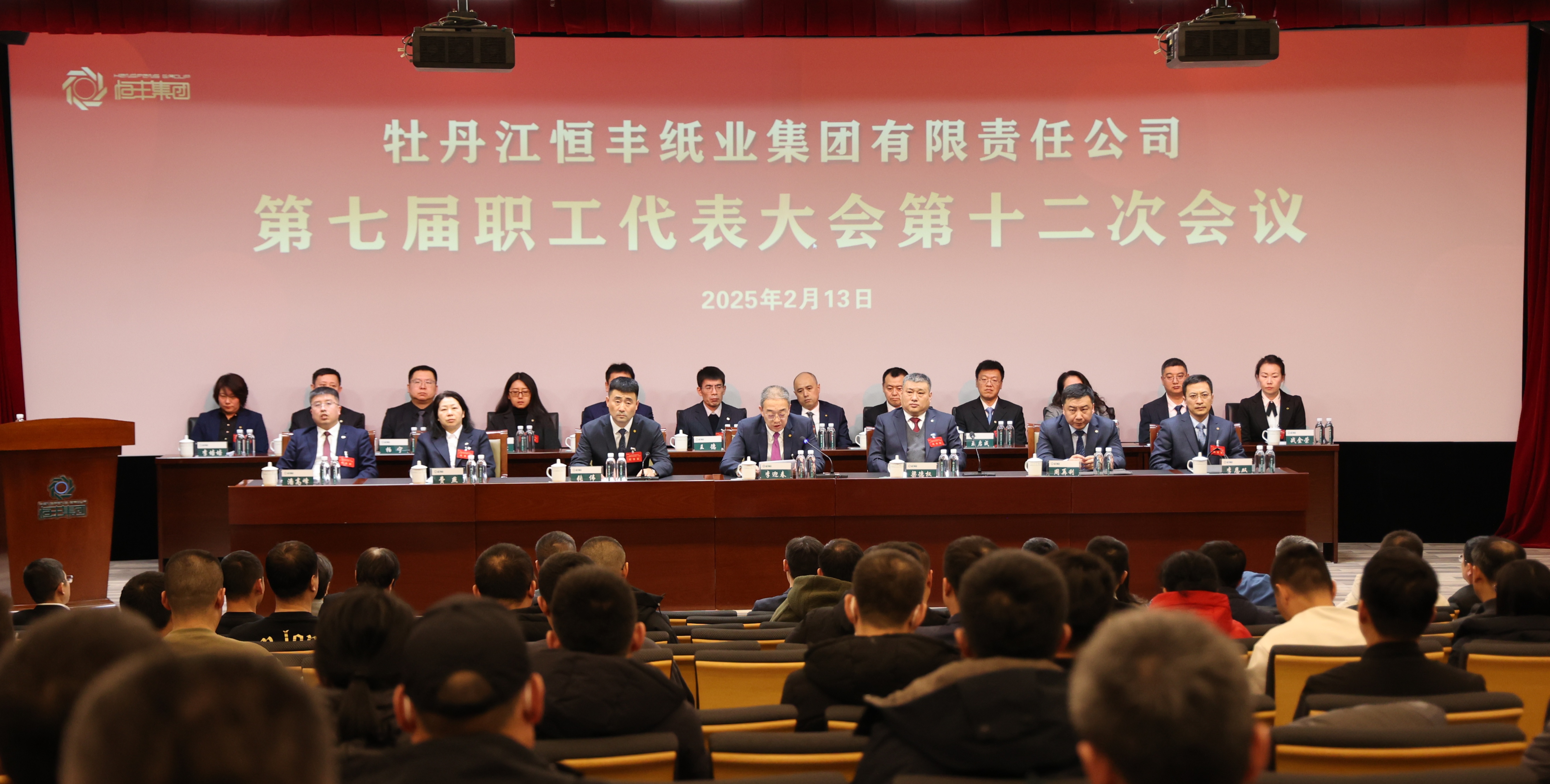 牡丹江恒丰纸业集团有限责任公司第七届职工代表大会第十二次会议于2月13日在恒丰博物馆报告厅召开。恒丰集团、恒丰纸业两级领导,以及来自各条战线的116名职工代表、4名特邀代表、29名列席代表参加大会。恒丰集团党委副书记、工会主席张伟主持会议。在15个视频会议分会场,500余名员工同步收看大会直播,听取会议报告。