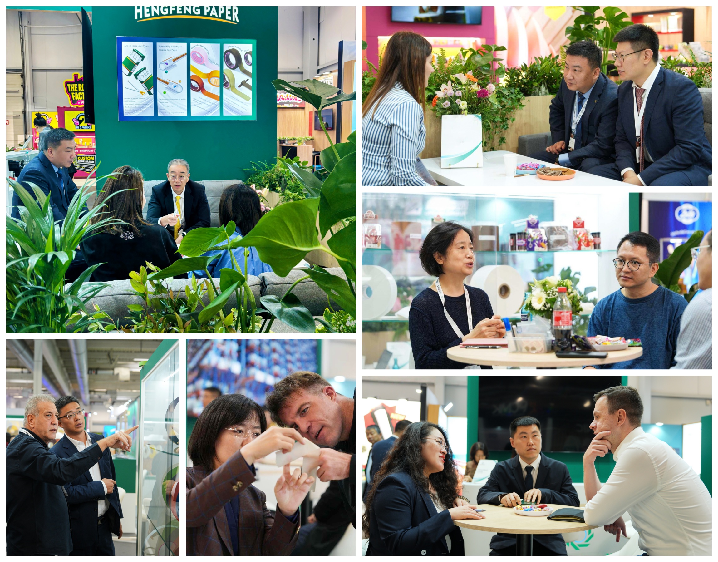 展会期间,恒丰纸业外贸及技术团队与来自世界各地的同行交流探讨,与各大烟草公司及知名手卷纸品牌RAW、GIZEH、Rizla等客户交流新产品的研发合作。