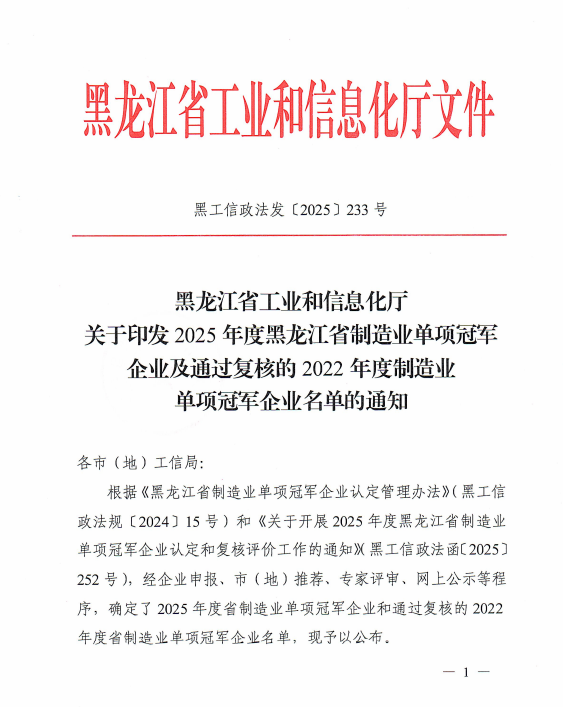 近日,黑龙江省工业和信息化厅正式发布了《关于印发2025年度黑龙江省制造业单项冠军企业及通过复核的2022年度制造业单项冠军企业名单的通知》,恒丰纸业股份有限公司再次成功获评省级制造业单项冠军企业,充分彰显了公司在细分领域的领军实力。